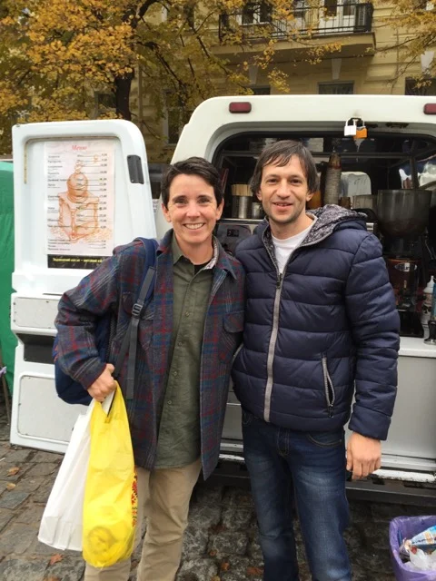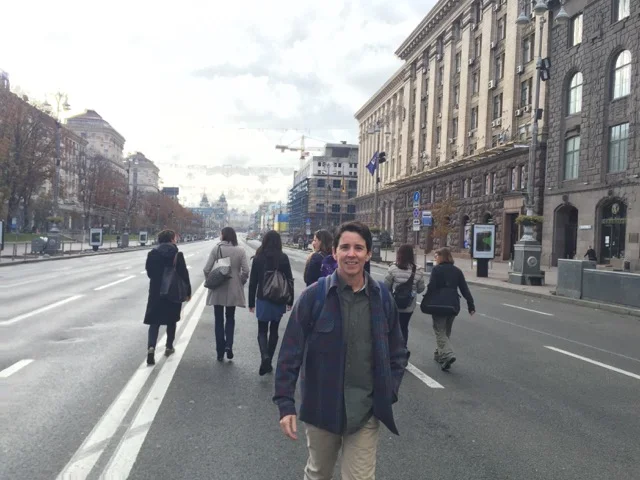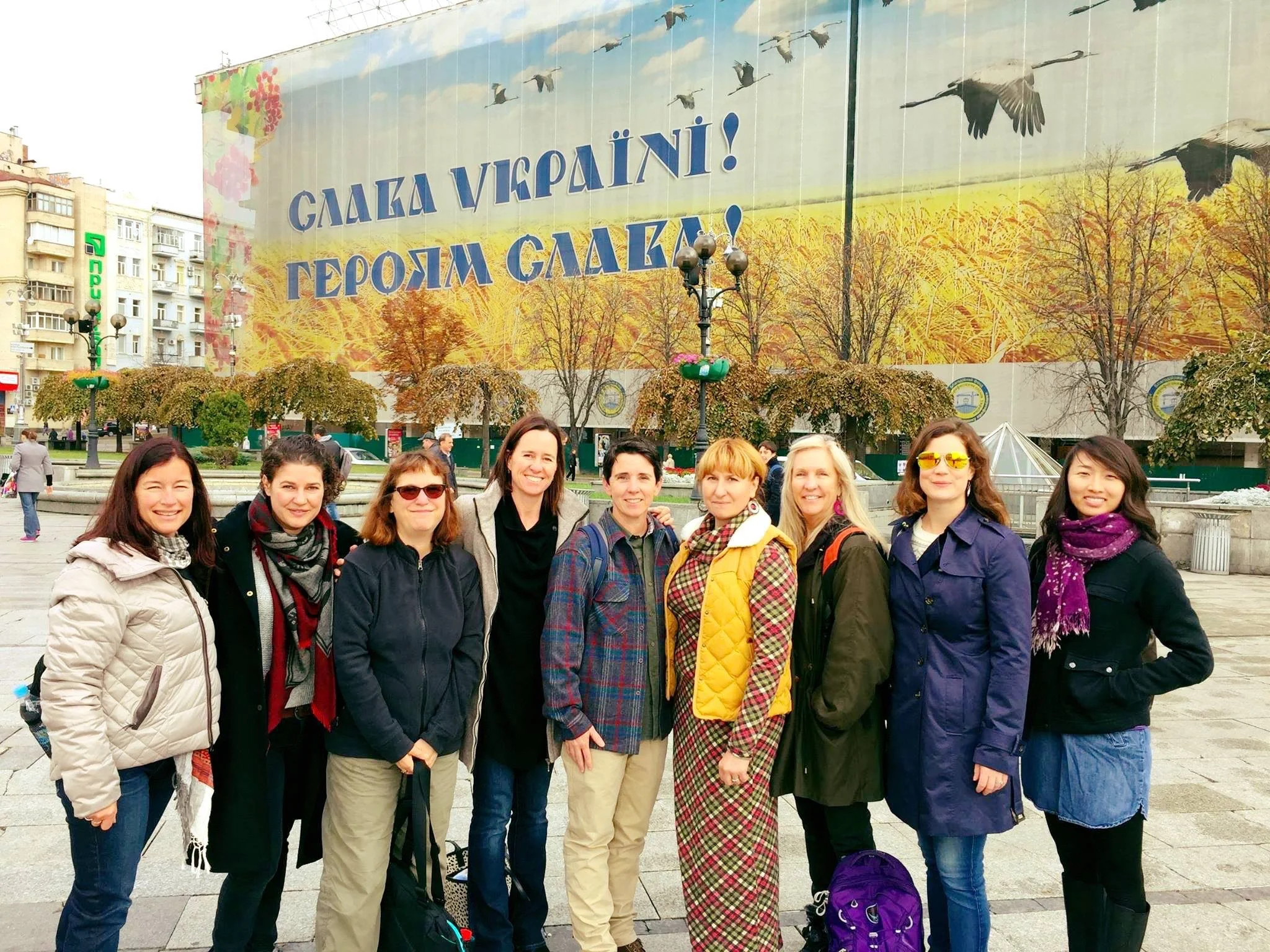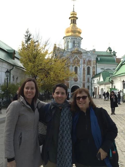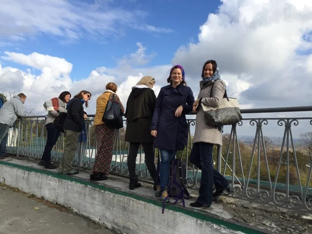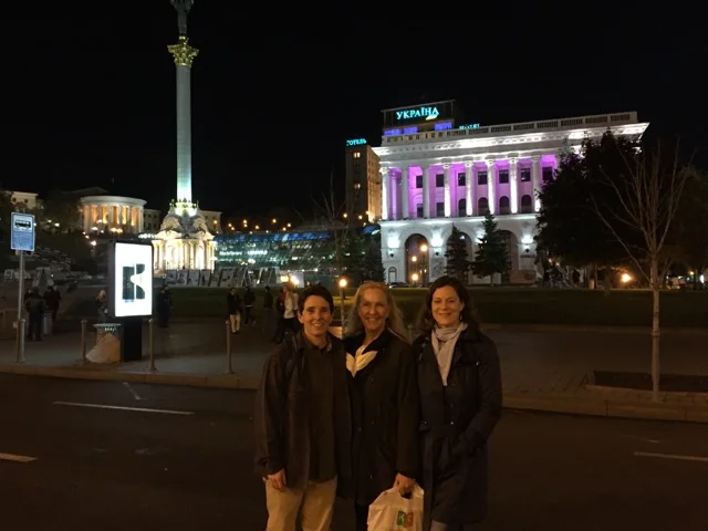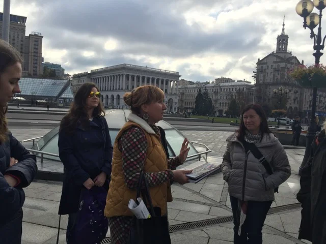 On Thursday morning, the final day of the #Tech2Empower workshops, we encountered a lively protest surrounding our hotel and bank next door. The group was protesting the flat rate of the Hrynia, 1 Ukrainian Hrynia equals 0.044 US Dollar. Military men were lined up 6 rows deep 10 persons wide on either side of the hotel as well as a bus full of Military parked around the corner for backup.